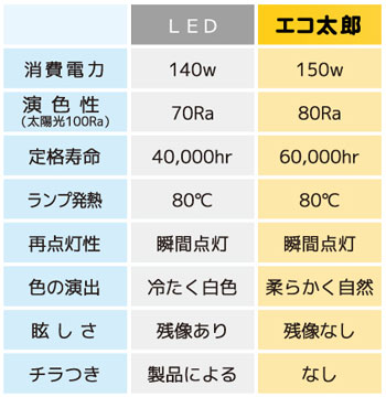 これまでの水銀灯とは異なり、拡散性が無くなってしまったことが、一番の要因です。指向性が高いがゆえに、光が広がらない構造となっているんですね。目に飛び込むとギラギラ眩しいのもある種欠点となっていまいます。